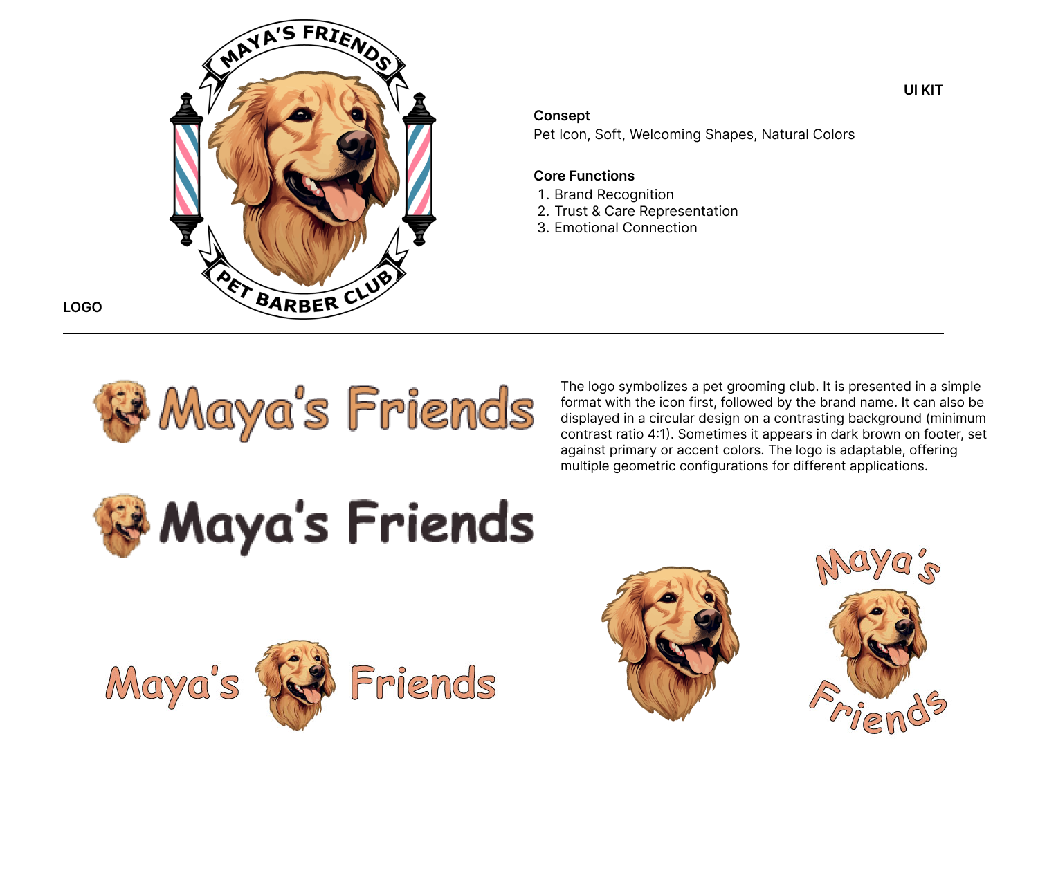 The pet care site's visual design is warm and approachable. The colour palette will evoke trust and comfort with soft, friendly tones. Clean, modern typography and pet-themed icons and imagery will ensure readability and a strong emotional connection. The UI kit includes essential design components, all aligned with the brand's visual identity. Each component is designed for ease of use, with a mobile-first approach. The UI kit ensures consistency across the site, enhancing the user experience.
