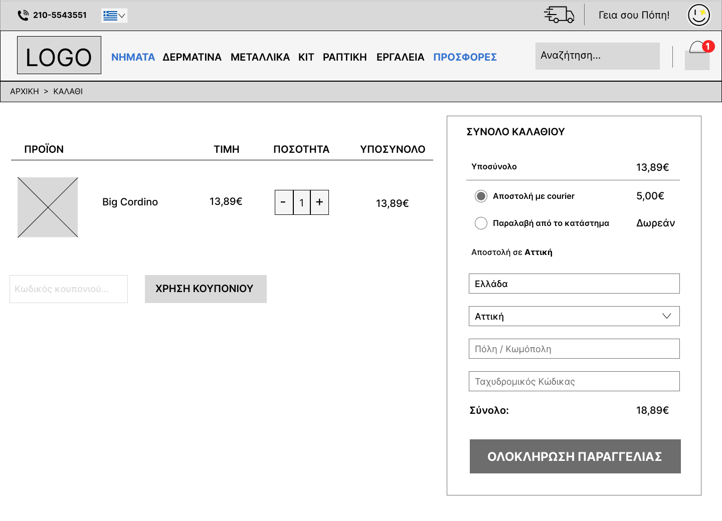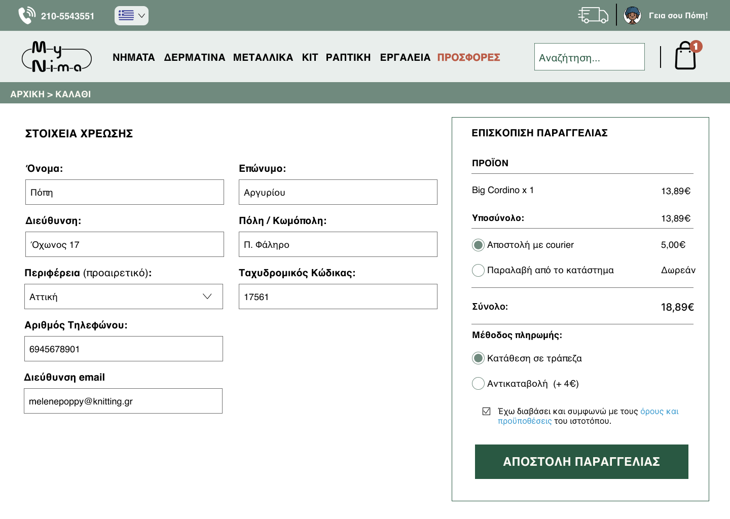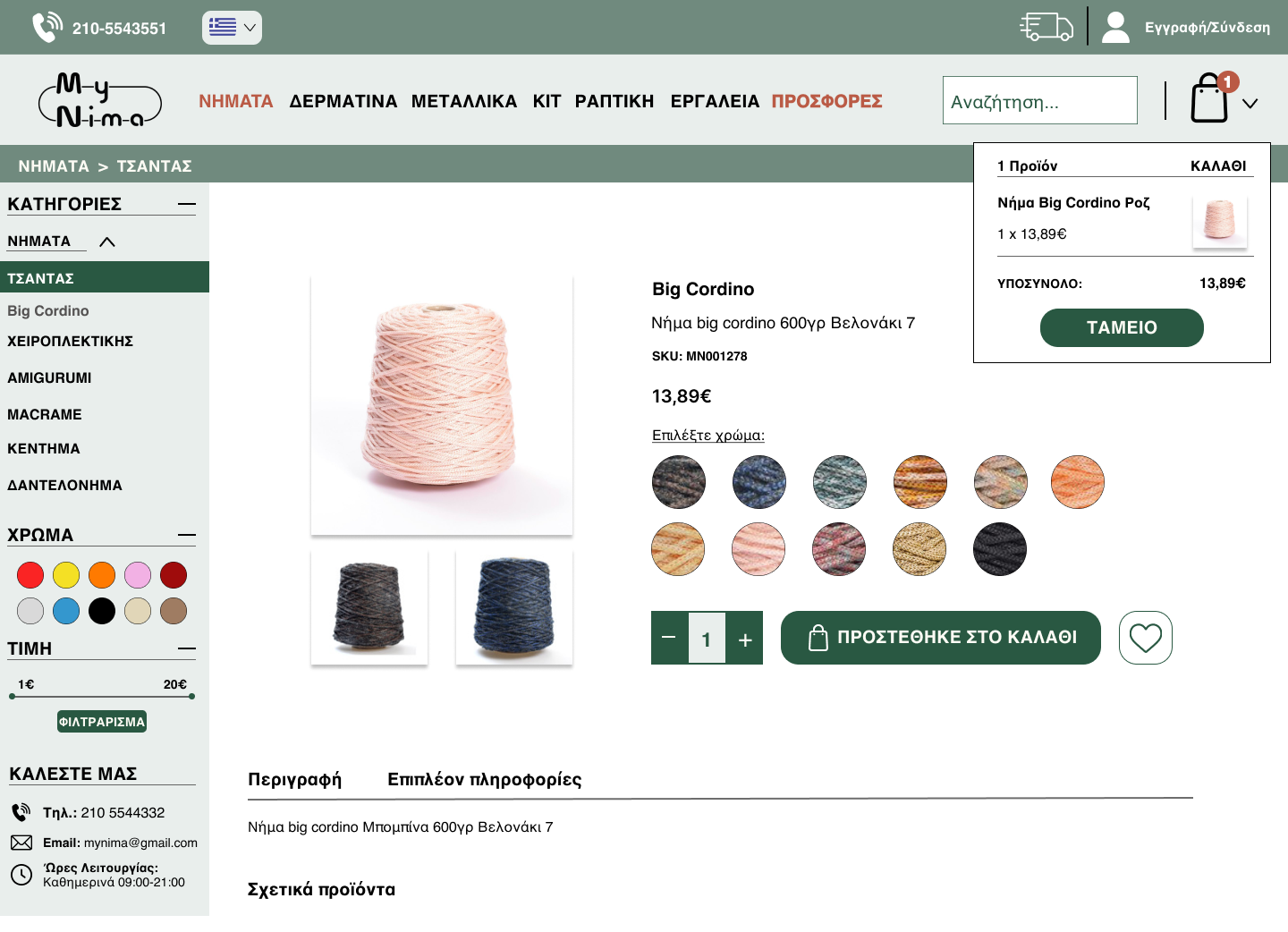 based on material and colour, adding it to the shopping basket and completing the checkout