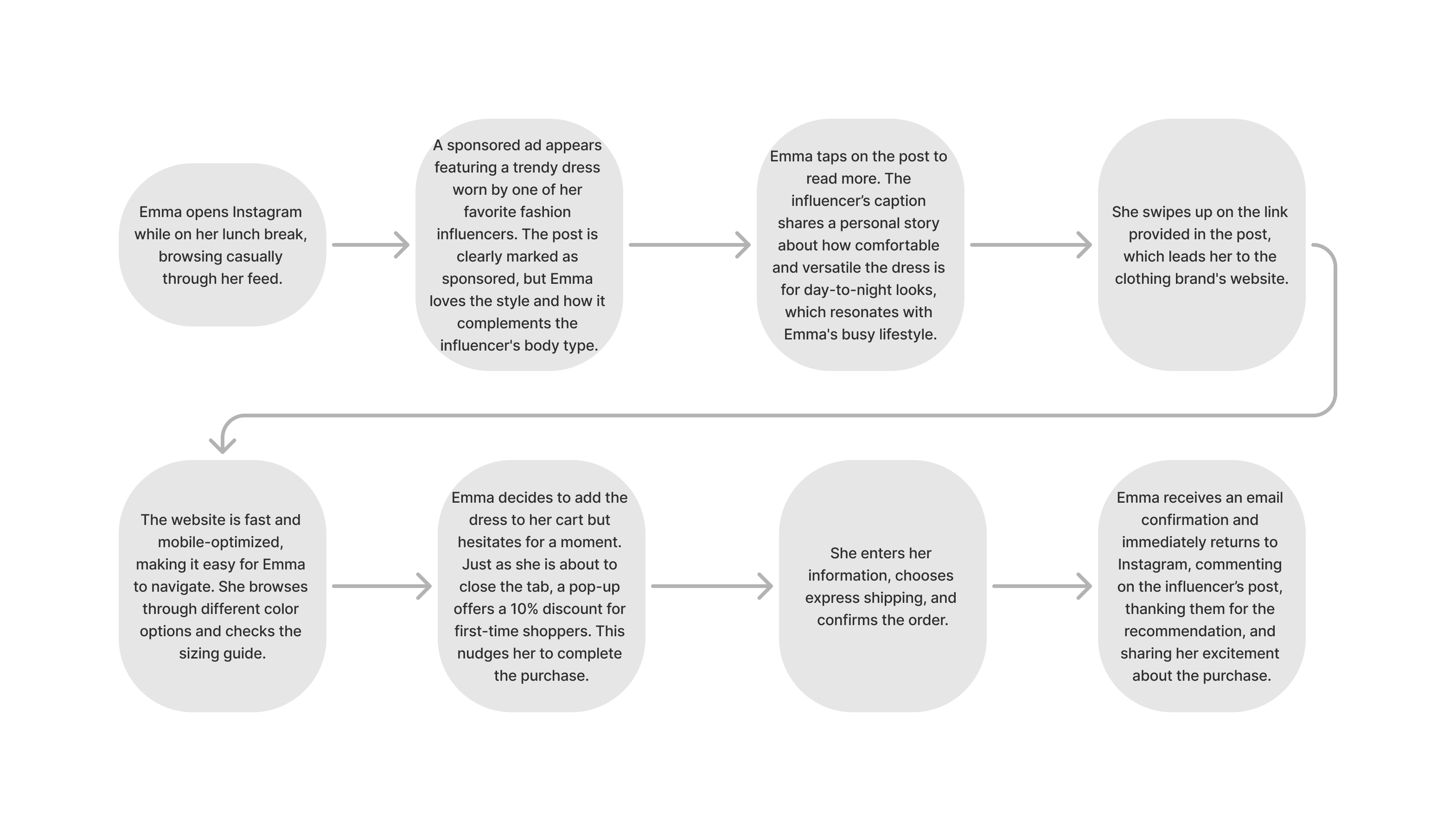Example: Social Media Scroll to Purchase. User: Emma, a 28-year-old